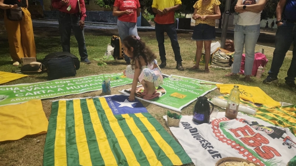 O ato reuniu um grupo de trinta pessoas entre elas representantes de entidades: CEBS, Ninho Verde, Povo do Baduguê, Associação Cultural e Mulheres do PSOL. O momento de abertura foi conduzido por representantes da CEBS com a mística. Após ocorreu a leitura da Carta à Humanidade que será entregue na COP30.