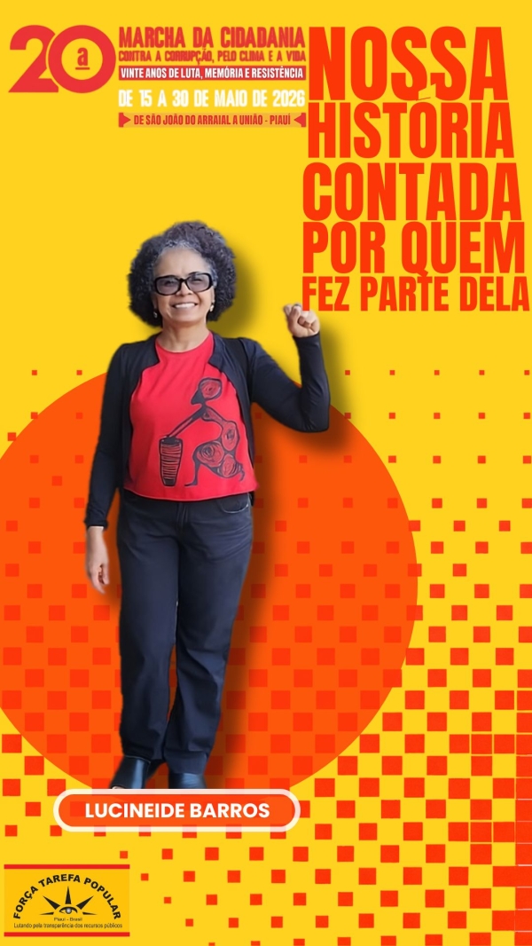 Lucineide Barros, professora da Universidade Estadual do Piauí (UESPI), conhece a Força-Tarefa Popular (FTP) desde sua criação e participou da 1ª Marcha a pé, em Picos, ao lado da filha — ainda bebê —, do marido e de outros companheiros (as).