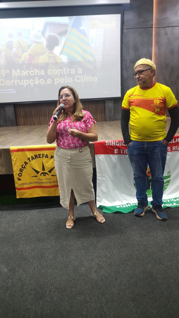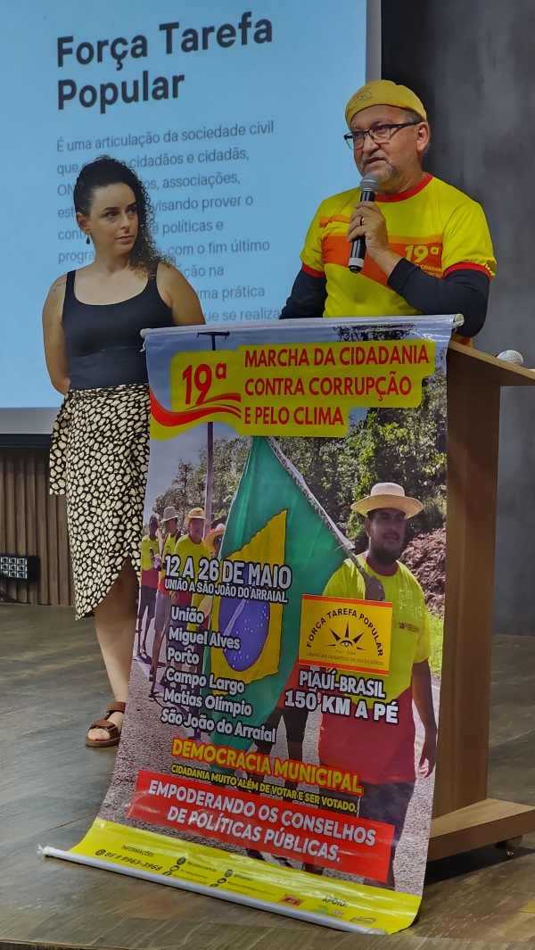 A mobilização organizada pela Força-Tarefa Popular em parceria com a Transparência Internacional- Brasil, realizou ainda, às 16h, no Cine Teatro de São João do Arraial- PI, grande Audiência Pública que encerrará a 19ª edição da MARCHA