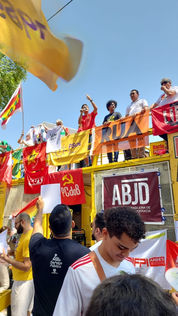 O ato foi organizado conjuntamente por diversas entidades sindicais e representou um grito de repúdio à proposta de anistia para golpistas e assassinos e à chamada “PEC da Blindagem”, medidas que ameaçam pilares democráticos e a responsabilização de quem atentou contra o Estado de Direito.