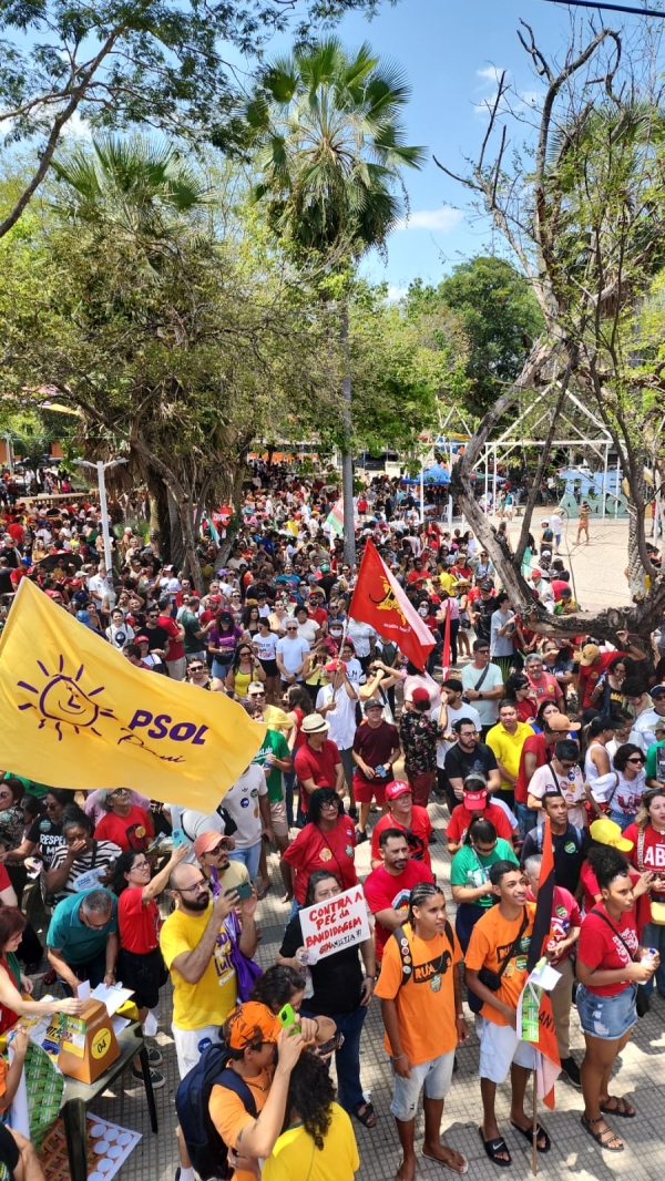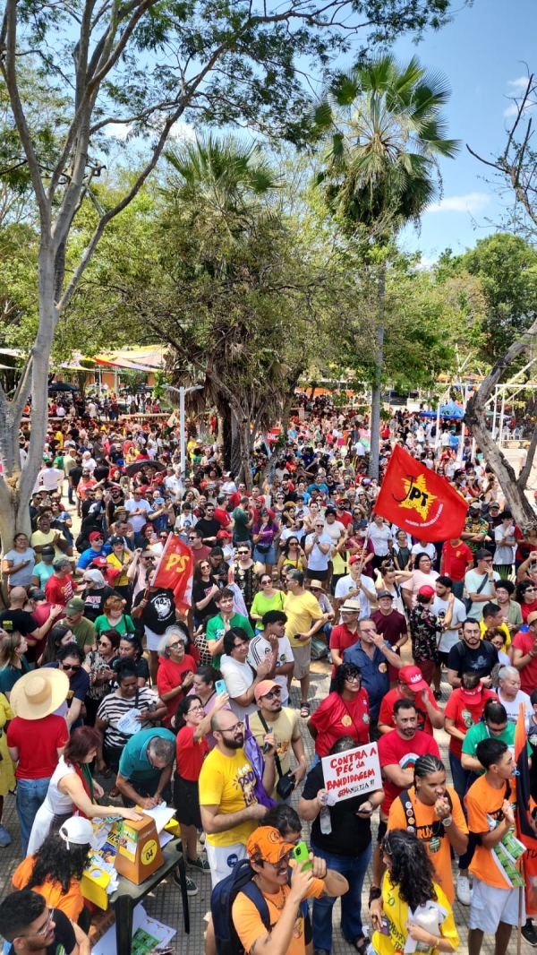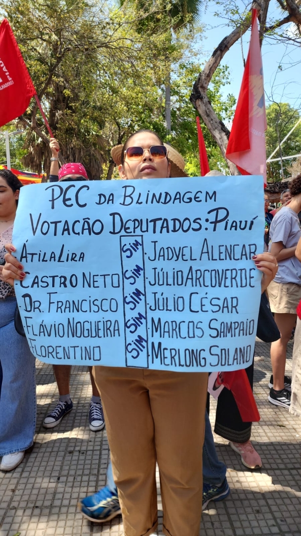 Dezenas de milhares de manifestantes se concentraram na Praça Pedro II, Centro de Teresina neste domingo (21), em Ato Público contra a PEC da Blindagem. A Força-Tarefa Popular (FTP), se juntou ao povo nas ruas e demais entidades sindicais e instituições em defesa da justiça, dos direitos sociais e da soberania nacional.